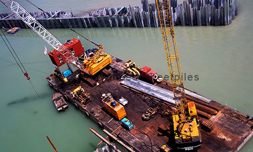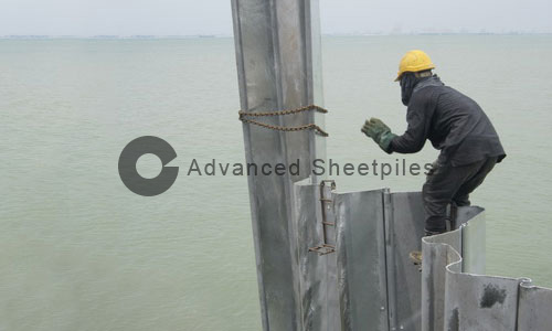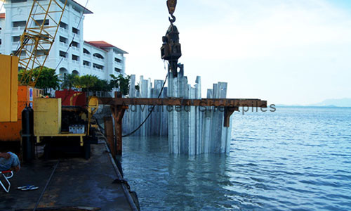 The breakwater in Penang was awarded to Advanced Geomechanics Sdn Bhd to provide complete structural design and construction of the sheet piles caisson using 5mm thick Advanced sheet piles. The sheet piles were galvanised and concreted to protect corrosion from the sea water environment. 12m long sheet piles were transported from our factory at Suzhou to the site in Penang where they were welded to 17m long sheet piles for installation.